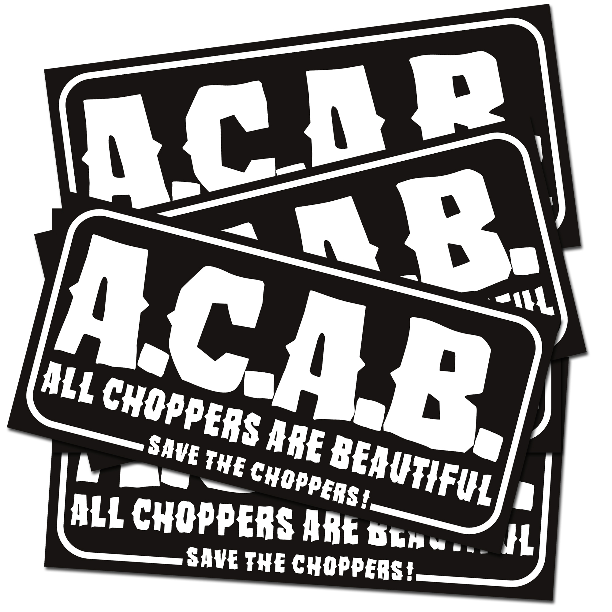 »Okay okay, wir hätten auch »Acht Cola, acht Bier« auf unsere neuen Sticker, Kappen und Patches schreiben können. Das wäre aber nicht korrekt gewesen, wo doch jeder weiß, für was die Abkürzung auf unserem neuen Motiv wirklich steht. All Choppers are Beautiful, nur daran denken wir! «